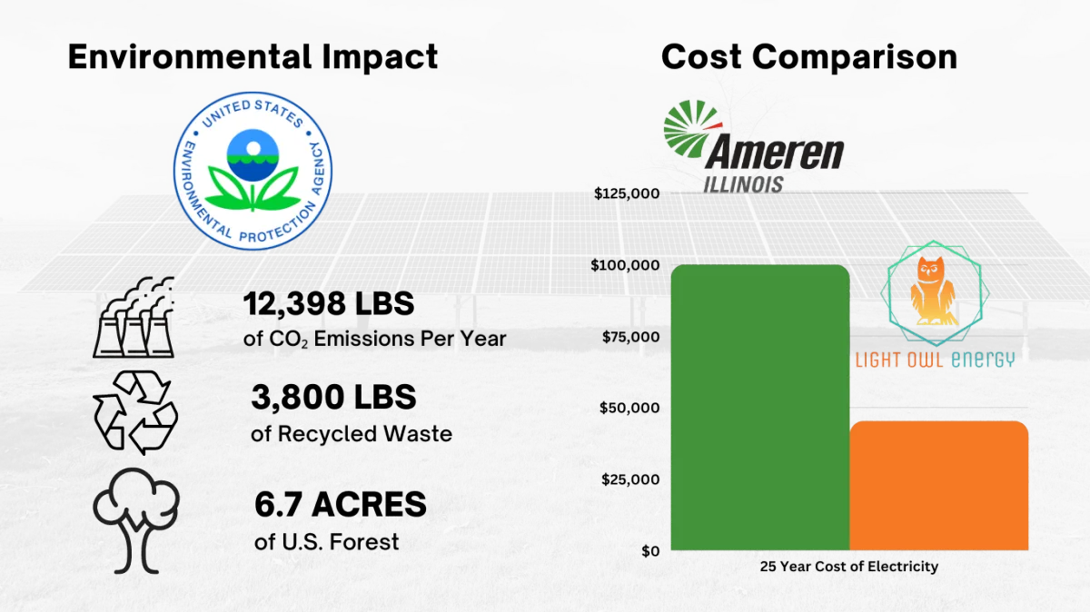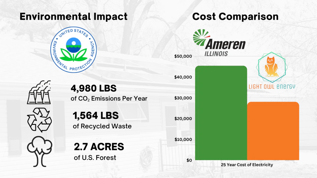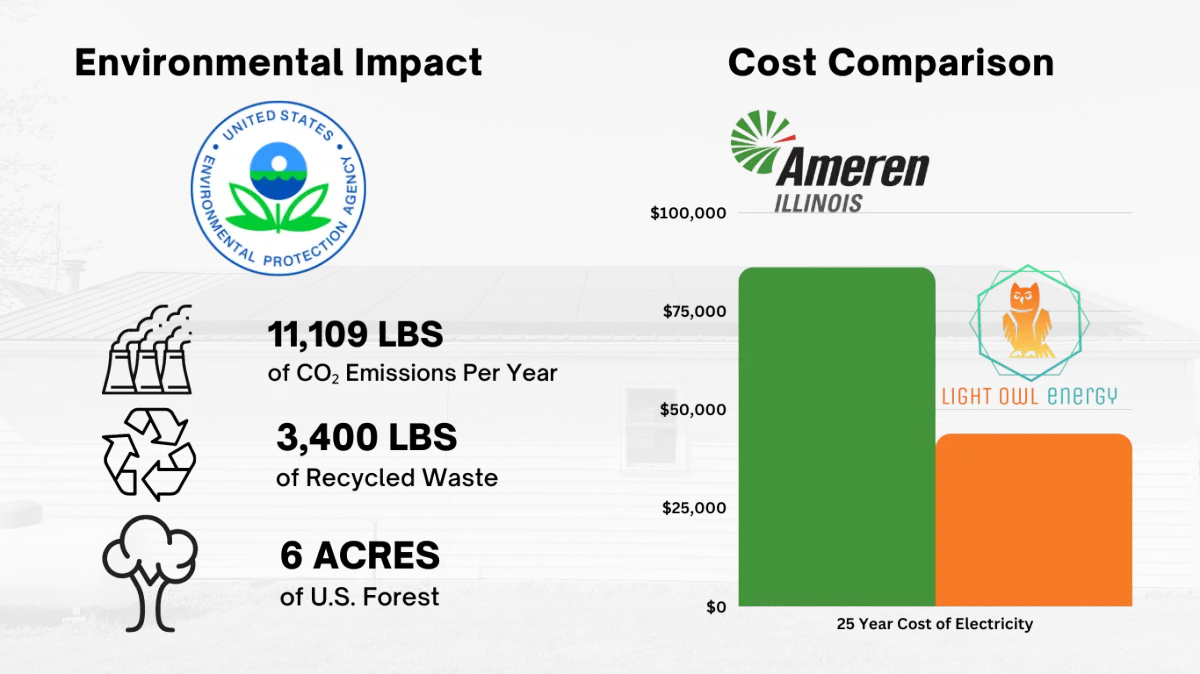 "At first, we were worried that we wouldn't be able to do solar because of our roof design but we were happy to find out that we could install the project in our yard. With how much we had been spending with Ameren, it was a relief to be able to free up our budget."